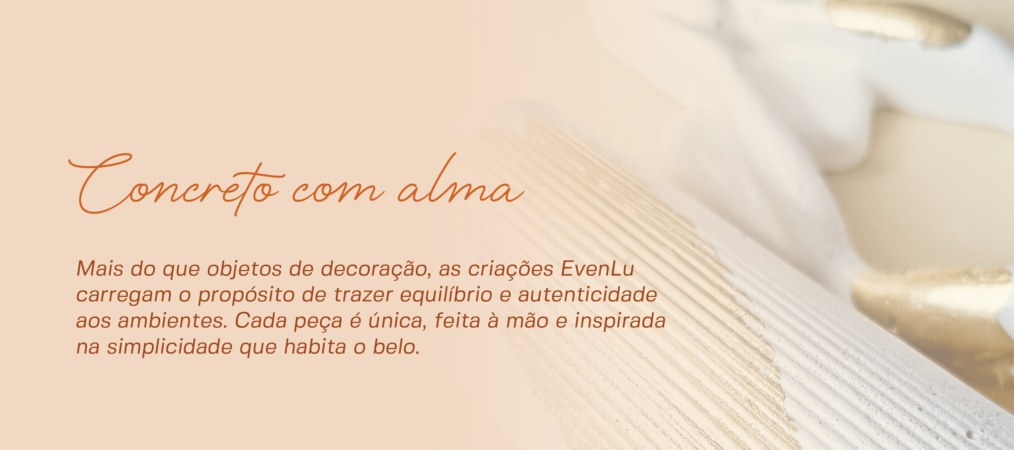 Na EvenLu, cada peça nasce das mãos e da alma. O concreto — material bruto e essencial — ganha forma, leveza e significado em um processo totalmente artesanal, onde cada etapa é feita com cuidado e intenção.